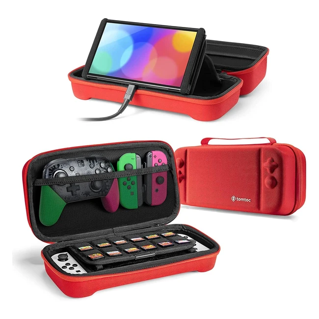 tomtoc Nintendo Switch Carrying Case - Ultimate Protection for OLED and Old Model, Large Storage Bag with 24 Game Cartridges - Red