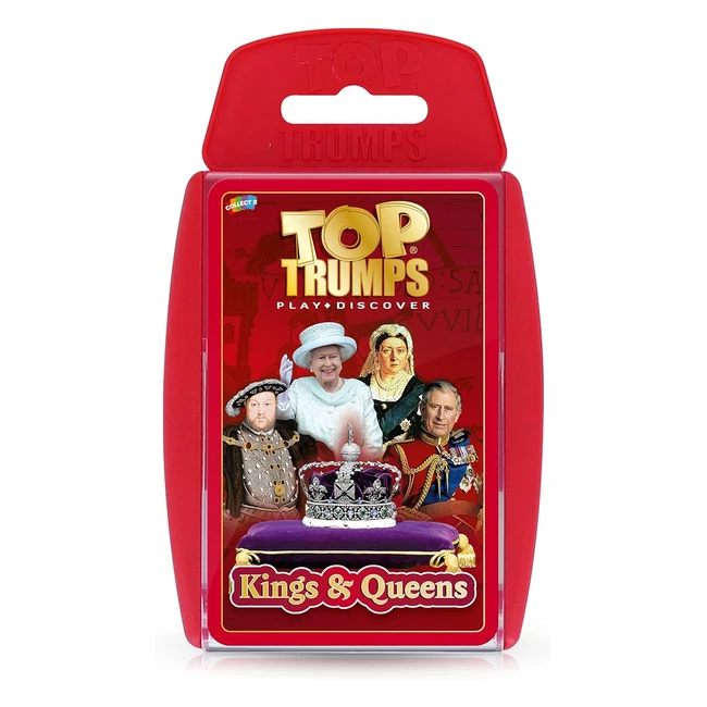 Get ready to become the Top Trump with the royally refreshing Kings and Queens Top Trumps card game. Outsmart your opponents with new British facts and duel your way to the top. Find out about Queen Victoria's reign and Richard the Lionheart's military might. Play anytime, anywhere with the easy-to-carry plastic case. Perfect for travel or holidays, this game keeps kids entertained and encourages real-world interaction. Improve concentration, observation, and deductive reasoning. Celebrate the kings' coronation with your very own pack of Kings and Queens Top Trumps. See more details below.
