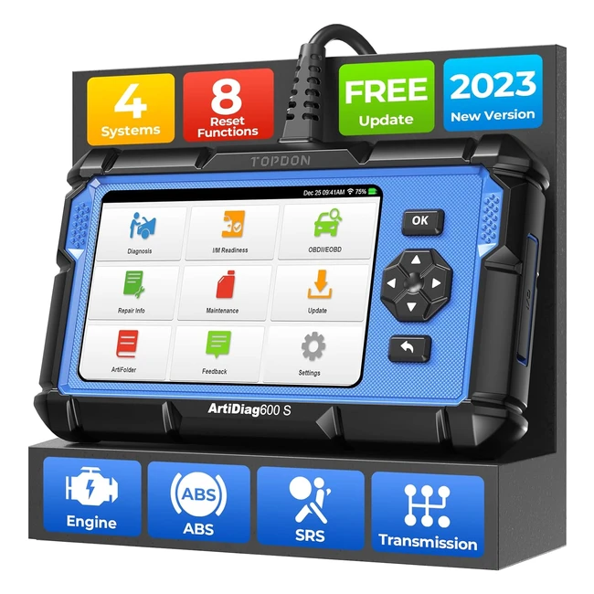 Topdon OBD2 Code Reader Scanner ARTIDIAG600S - Reset Service for Oil/BMS/ABS/SAS/EPB/DPF/TPMS/Throttle ABS/SRS/Engine/Transmission Car Diagnostic Tool - Free Lifetime Upgrade - 2 Years Warranty