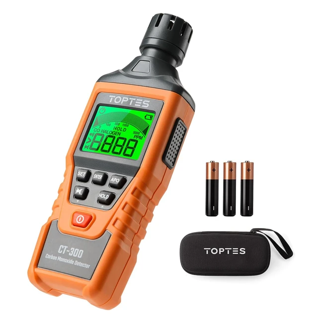 Toptes CT300 - Détecteur monoxyde de carbone portable - Alarme sonore et visuelle - 05000ppm - Maison Voiture Camping - 3 piles - Orange