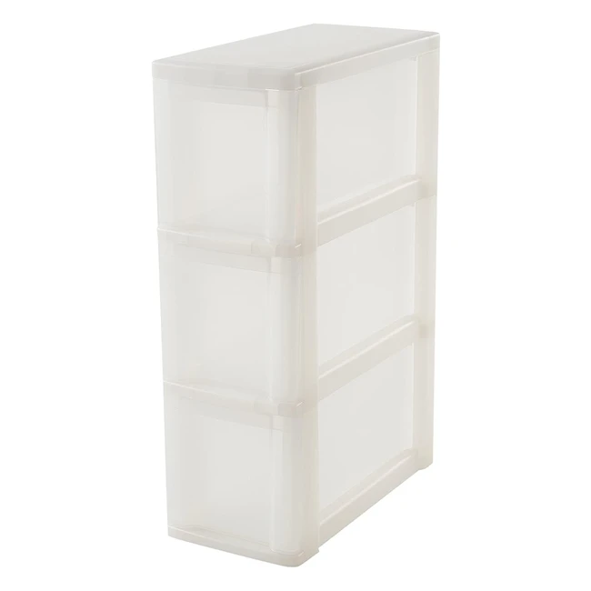 Tour Commode Organisateur Plastique 10L 3 Tiroirs Roulettes Blanc