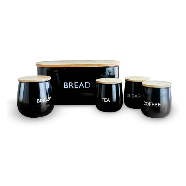 -16%Equip your kitchen with this durable and hardwearing 5 piece storage set, including a bread bin, biscuit barrel, and 3 canisters. Keep contents fresh with airtight mango wood lids. Spacious capacity for all your storage needs. 3 year guarantee included.