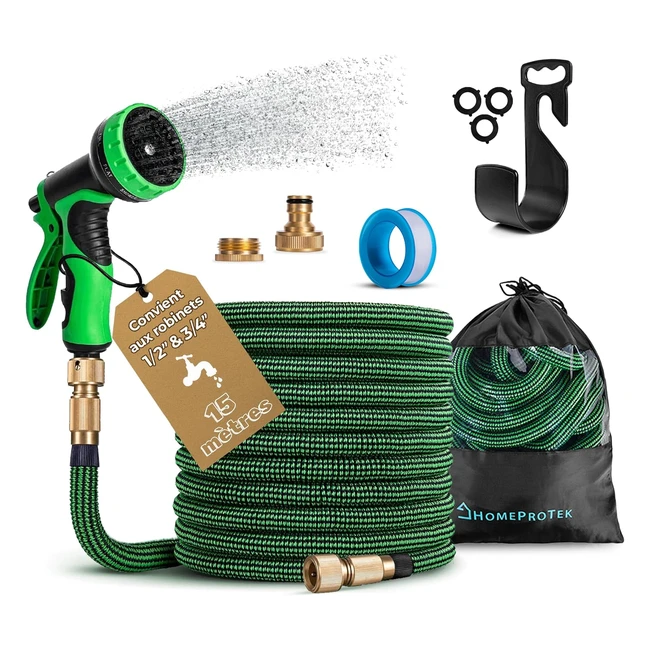 Tuyau d'arrosage extensible Homeprotek 15m - Résistant - 9 modes de pulvérisation