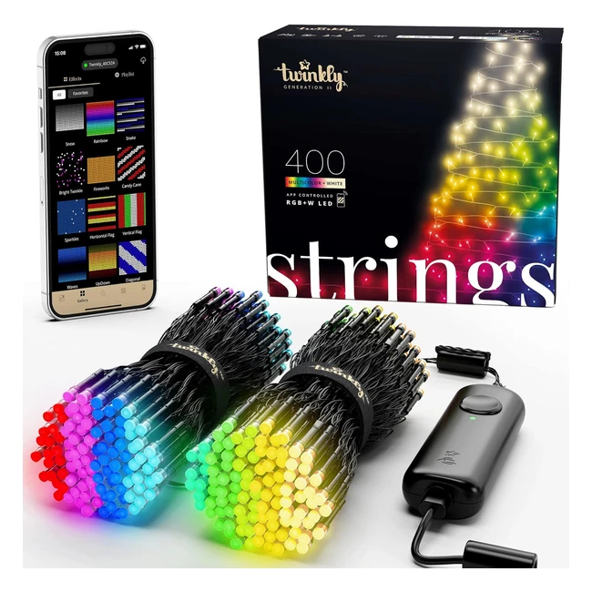 Twinkly Strings Christmas Lights - 400 RGB Pure Warm White LEDs - Indoor/Outdoor - App-controlled Lighting