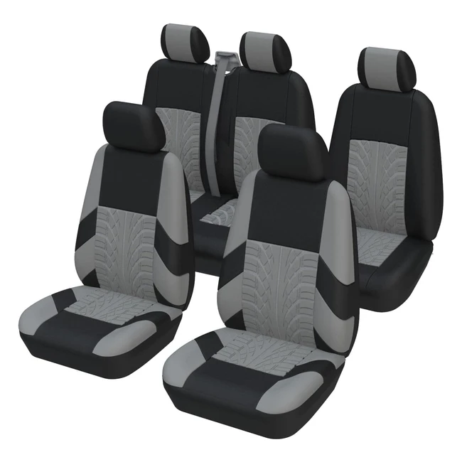 Universal Car Van Seat Covers Full Set - ToYoun, Gray, 5 Seater, Front Pair & 12 Twin Passenger Rear Seat Covers