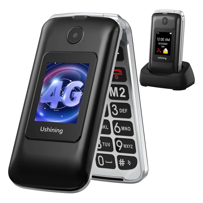 Ushining Teléfono Móvil 4G para Personas Mayores con Teclas Grandes y Botón SOS - Negro