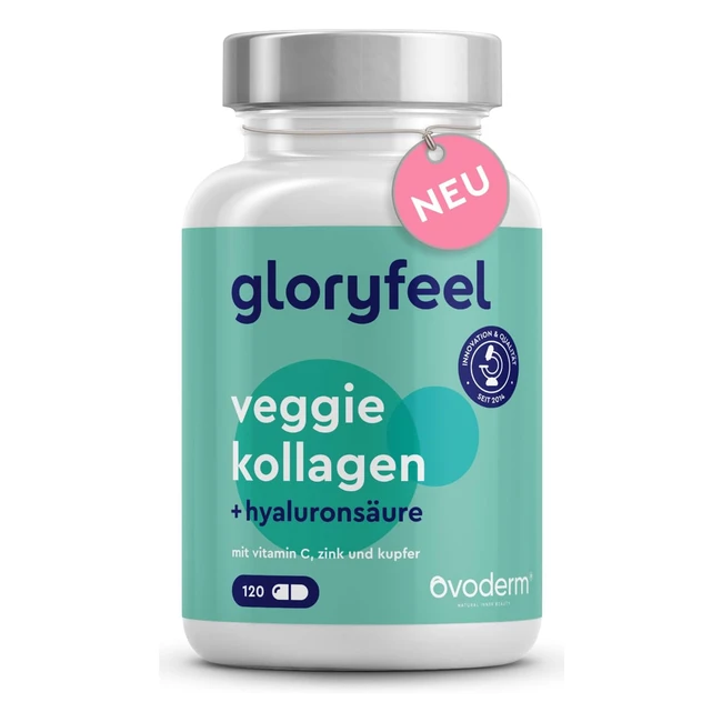 -15%Vegane Kollagen Kapseln - 100% veggie - 300 mg Ovoderm - 66 mg Kollagen Typ 1 - 100 mg Hyaluronsäure - 50 mg Vitamin C, 15 mg Kupfer, 10 mg Zink - Für Haut, Haare, Nägel - 120 Kapseln - Ohne Zusatzstoffe - Made in Germany