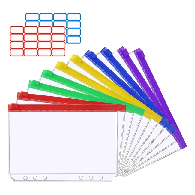 Vicloon A5 Zipper Binder Pockets 10pcs - Waterproof, Tear Resistant - Multicolor