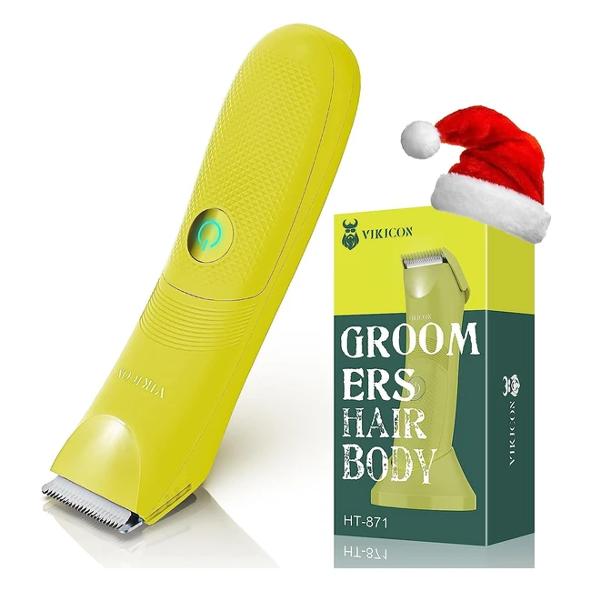 Vikicon Pubic Hair Trimmer for Men & Women - Waterproof Manscape Body Groomer with Detachable Ceramic Blade - USB-C Charging - Electric Male Razor