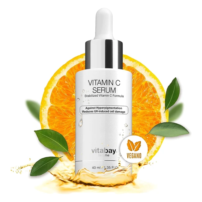 -16%Vitamina C siero idratante viso donna Vitabay 40ml con 20% di vitamina C stabilizzata per una finitura lucente. Contiene vitamina E, aloe vera, astaxantina e olio di olivello spinoso. Siero illuminante viso che stimola la produzione di collagene per un tono della pelle uniforme. Vegano, biologico, senza parabeni, OGM e non testato sugli animali. Garantiamo qualità e purezza certificate grazie a controlli accurati. 25 anni di esperienza nella produzione di prodotti viso con vitamina C.