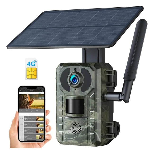 -5%Caméra de chasse 4G solaire avec carte SIM prépayée incluant 300m de données gratuites le premier mois. Contrôle à distance via téléphone, alimentation solaire, étanche IP66, stockage flexible jusqu'à 128Go, vidéos HD 25K, vision nocturne 940nm.
