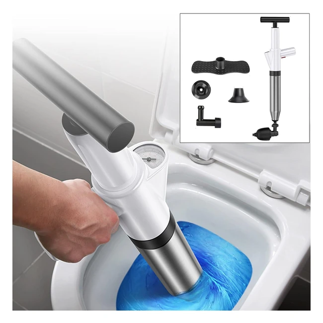 WCIC Déboucheur Toilette Haute Pression avec 4 Têtes Remplaçables - Pompe WC Déboucheur de Canalisation - Blanc