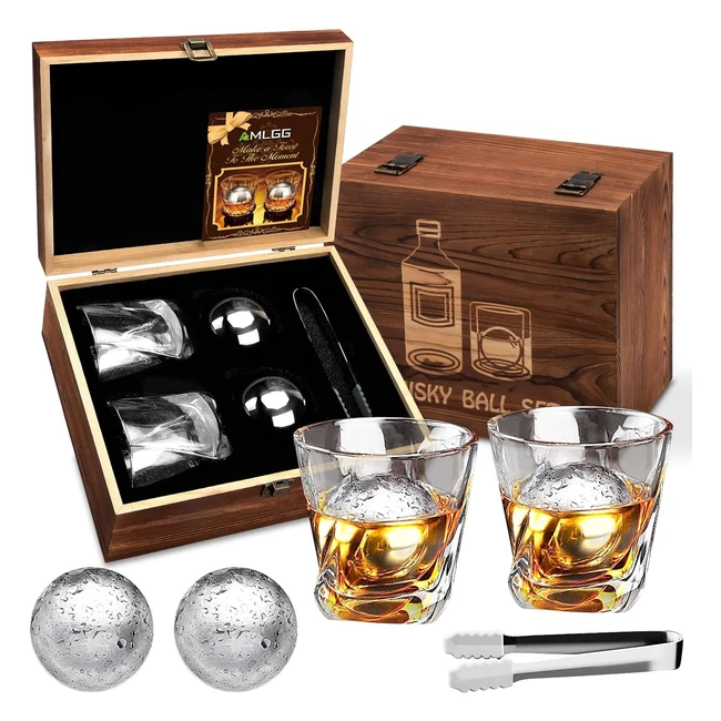 Whiskey Gift Set for Men - Whiskey Stones and Glass Gift Set with 2 Whiskey Glasses - XL Stainless Steel Whisky Balls - Tongs - Birthday/Christmas/Fathers Day