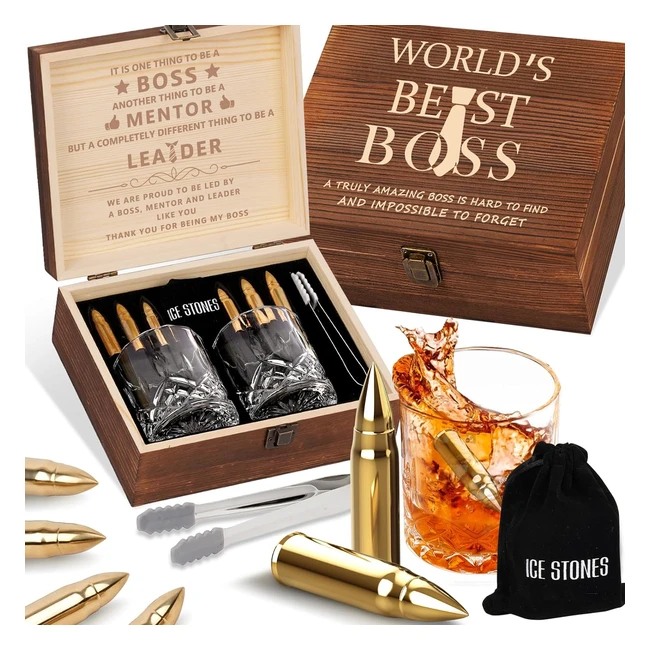 Whiskey Glasses Set - Best Boss Gift - Premium Quality - 6 Stones, 2 Glasses