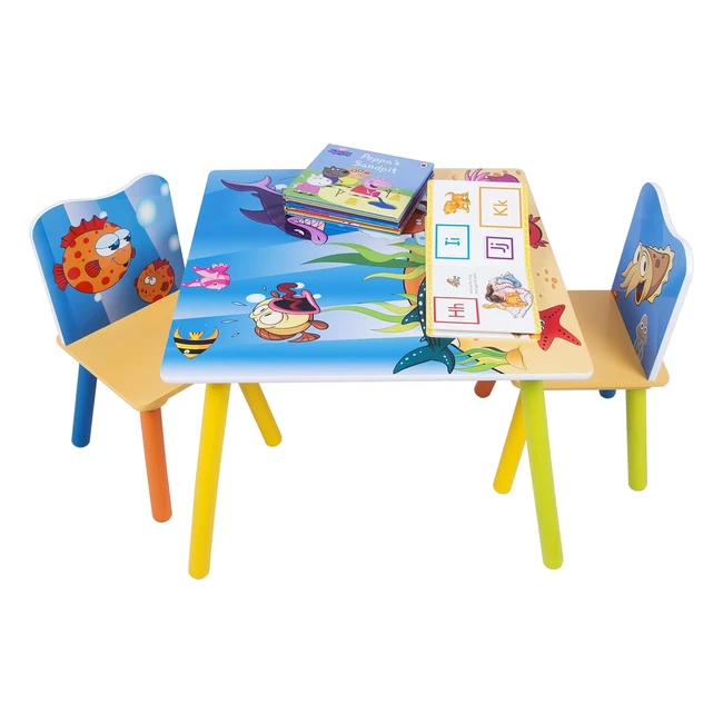 WOLTU Kindertisch mit 2 Stühlen für Kinder 60x44x60cm - Meermotiv - Robust & Stabil