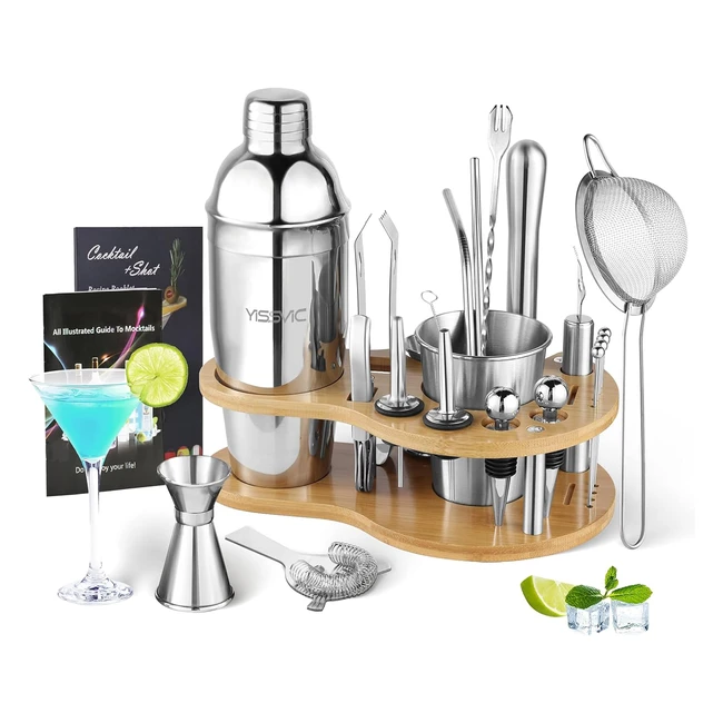 Yissvic Shaker Cocktail Set 22 Pezzi - Barman Professionale in Acciaio Inox - 750ml Shaker - Regalo per Casa Bar Festa