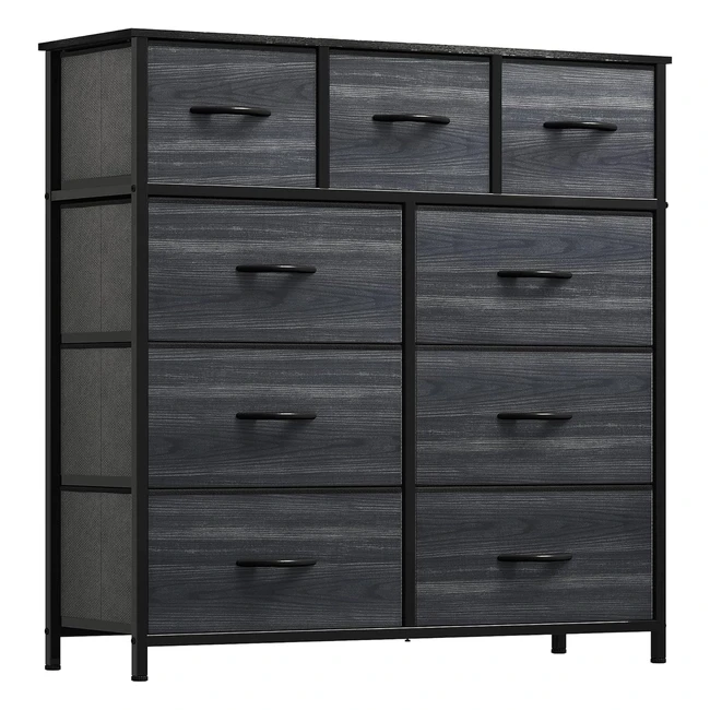 Yitahome 9-Drawer Fabric Dresser - Metal Frame - Charcoal Black Wood Grain