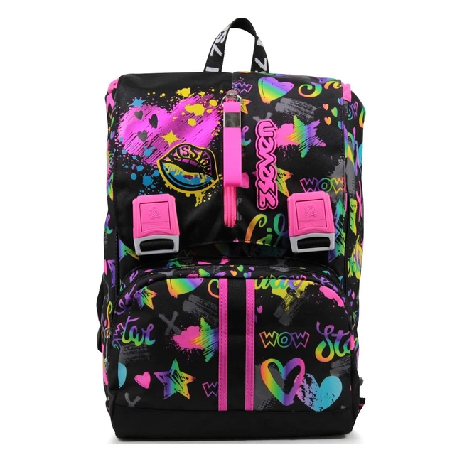 Zaino Scuola Estensibile Nero Iridescent - Seven REF123 - Spallacci Imbottiti