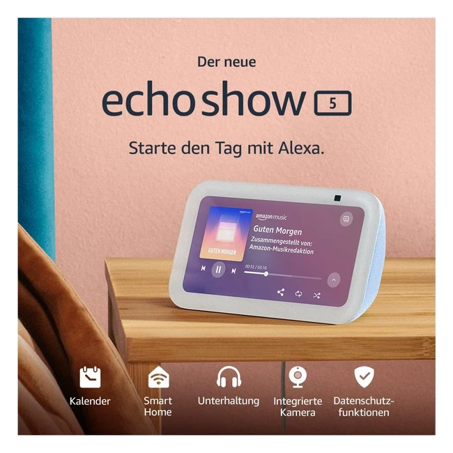 Alexa für den Nachttisch - Stelle Wecker und Timer, erstelle eine entspannende Playlist, starte den Tag mit einer Routine, die kompatible Lampen einschaltet oder rufe deinen Kalender oder den Wetterbericht ab. Kleines Gerät, gigantischer Klang - Streame deine Lieblingsmusik, Serien, Podcasts und mehr von Amazon Music, Spotify, Prime Video und weiteren Anbietern. Jetzt mit tieferem Bass und klareren Stimmen. Steuere kompatible Smart Home Geräte wie Lampen und Thermostate auch unterwegs. Integrierte Kamera für mehr Überblick - Sieh nach deiner Familie, deinen Haustieren und mehr. Stell deine Fotos zur Schau. Prime-Mitglieder profitieren zudem von unlimitiertem Cloudspeicherplatz für Fotos. Bleib über Videoanrufe in Verbindung. Nutze die 2MP-Kamera für Anrufe bei Freunden und Familienmitgliedern. Entwickelt um Datenschutz zu gewährleisten.