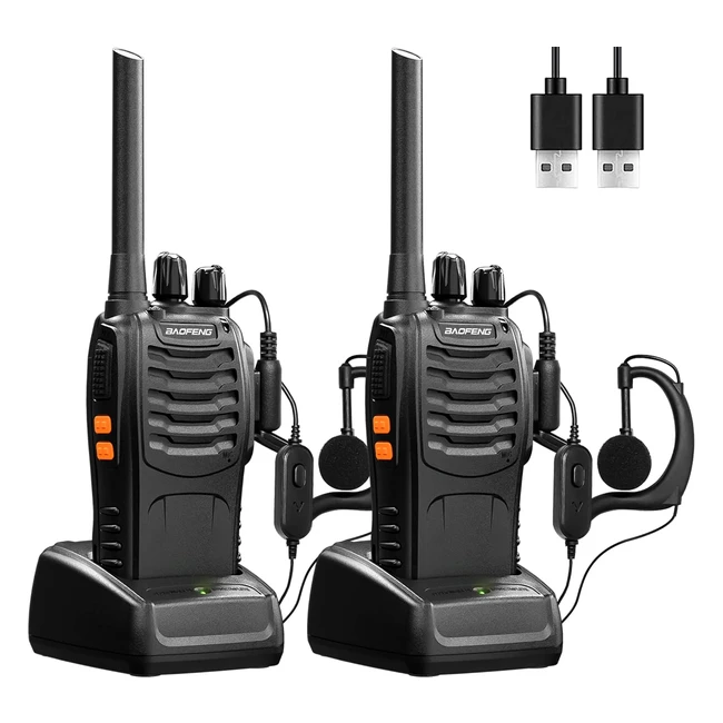 16 Channels Long Range Walkie Talkies USB Charger Earpieces Rechargeable Black 1 Pair