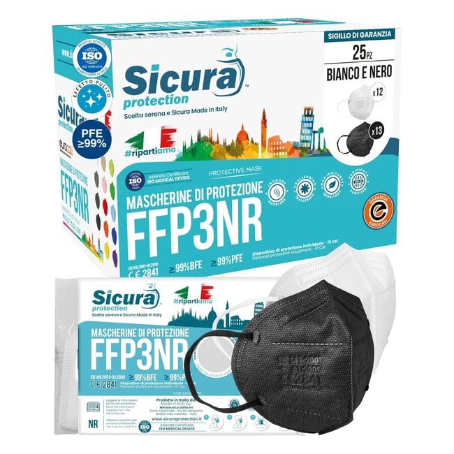 25 Mascherine FFP3 Certificate CE Nere e Bianche - Alta Protezione