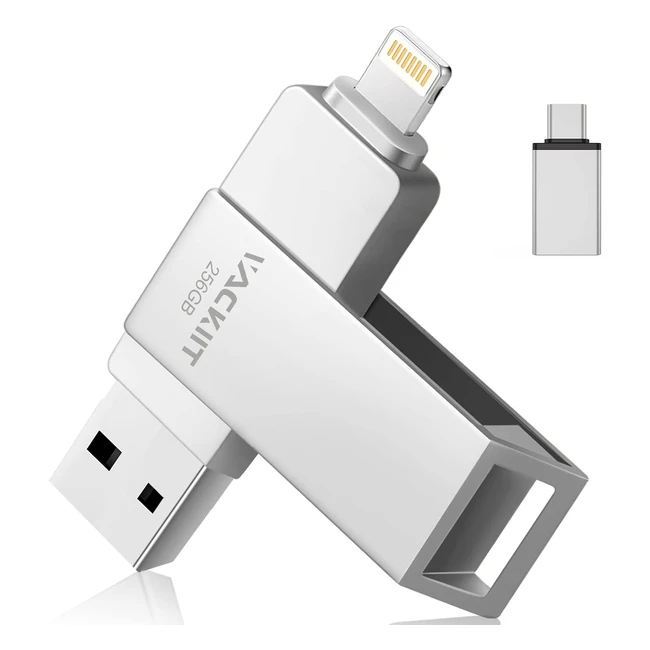 256GB Chiavetta USB per iPhone MFi Lightning Vackiit Pendrive Lightning Apple Certificato USB 3.0 USB C Memoria External USB Flash Drive Photo Stick per iPhone iPad iOS OTG Android Mac PC Argento