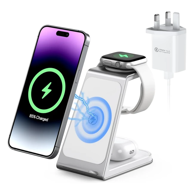 -20%Get this sleek and compact 3 in 1 wireless charging station for your Apple devices. Charge your iPhone, iWatch, and Airpods simultaneously with fast and stable wireless charging. Say goodbye to wire clutter and enjoy a convenient charging experience. Compatible with iPhone 15/14/13/12/11/X/8, Samsung Galaxy, and more. Don't miss out, buy now!