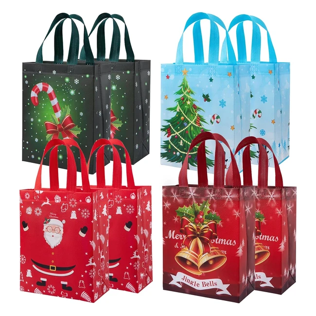 8pcs Small Christmas Bags with Handles - Reusable Shopping Bags - Santa Claus Christmas Tree Candy Bells - Merry Christmas - Gift Bag for Christmas Party