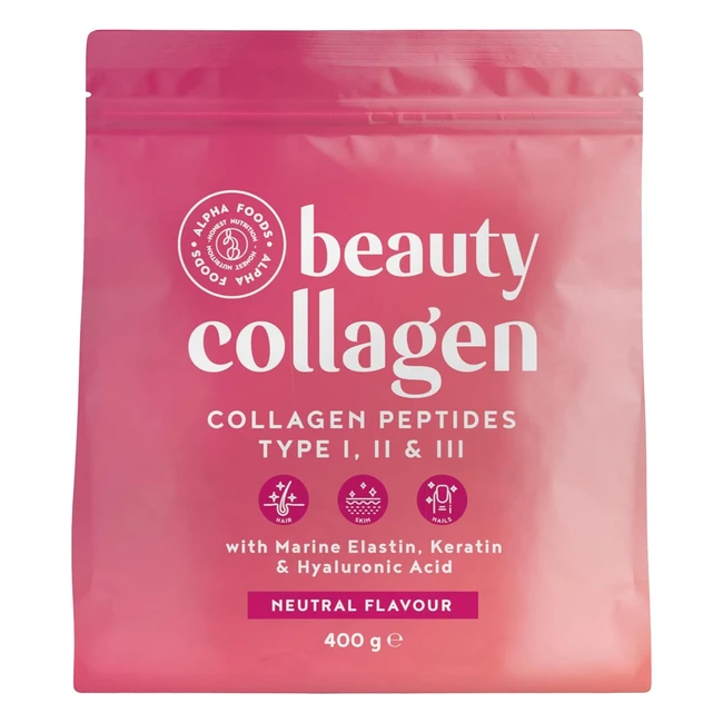Alpha Foods Beauty Collagen Pulver 400g - Kollagen Hydrolysat Peptide Typ I II III - Hohe Dosis Kollagen Pulver mit Hyaluronsäure, Elastin und Keratin - Neutral im Geschmack - Made in Germany