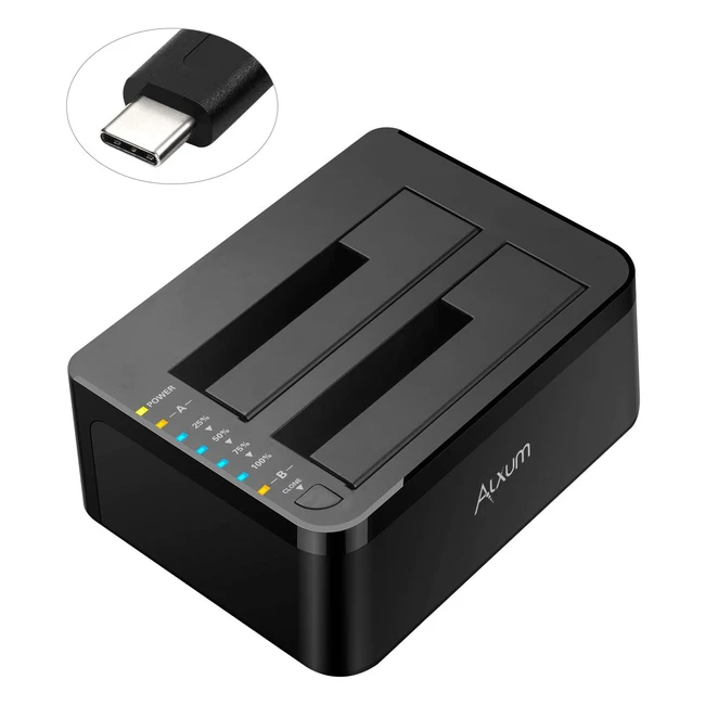 ALXUM External Hard Drive Docking Station - USB-C, 2 Bay, SATA, Offline Clone - Up to 2x 18TB