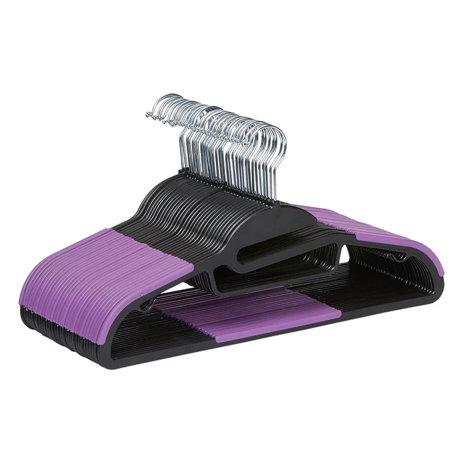 Amazon Basics Kunststoffbügel gummiüberzogen schwarz lila 30er Pack - Platzsparend & rutschfest