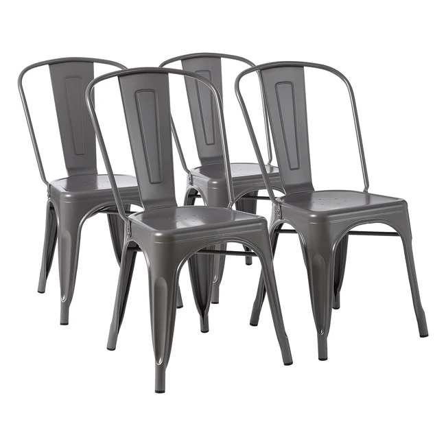 Amazon Basics Metal Dining Chairs Set of 4 - Dark Grey - Stackable - 51L x 43W x 85H cm