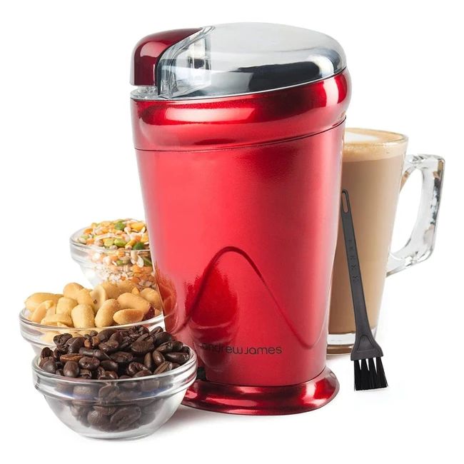 Andrew James Electric Coffee Grinder - Compact, Powerful, One Touch Operation - 150W - Red
