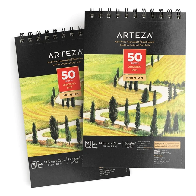Arteza Drawing Pad A5 2 Pack - Spiral Bound Artist Sketch Books - 50 Sheets Each - Acid Free Paper