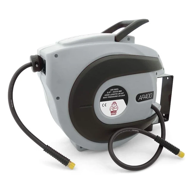 Scopri l'avvolgitubo professionale MAXTOOLS AR400 per uso industriale. Tubo flessibile da 20mt in polimero ibrido resistente ad aria e acqua da 5c a 60c. Con ingresso da 0.8mt, attacchi 3/8, sezione tubo 10x15mm per alto flusso d'aria. Dotato di guida a rulli e sistema di limitazione della velocitĂ  di rientro. Montaggio a parete o soffitto. Acquista ora!