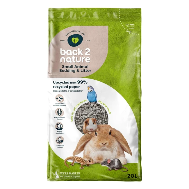 Back 2 Nature Small Animal Bedding & Litter Grey 20L - Odour Control, Highly Absorbent, Eco-Friendly