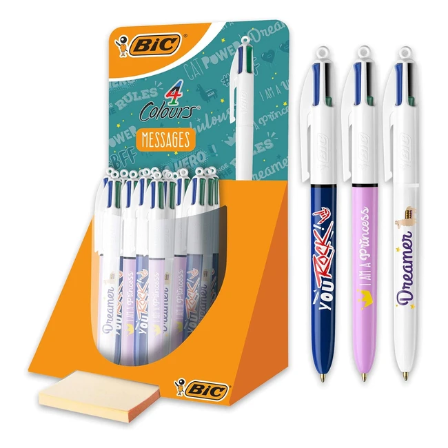 BIC 4Colour Messages Retractable Ballpoint Pens - Pack of 30 - Medium Point 1mm - Assorted Decorations - Blue/Green/Red/Black
