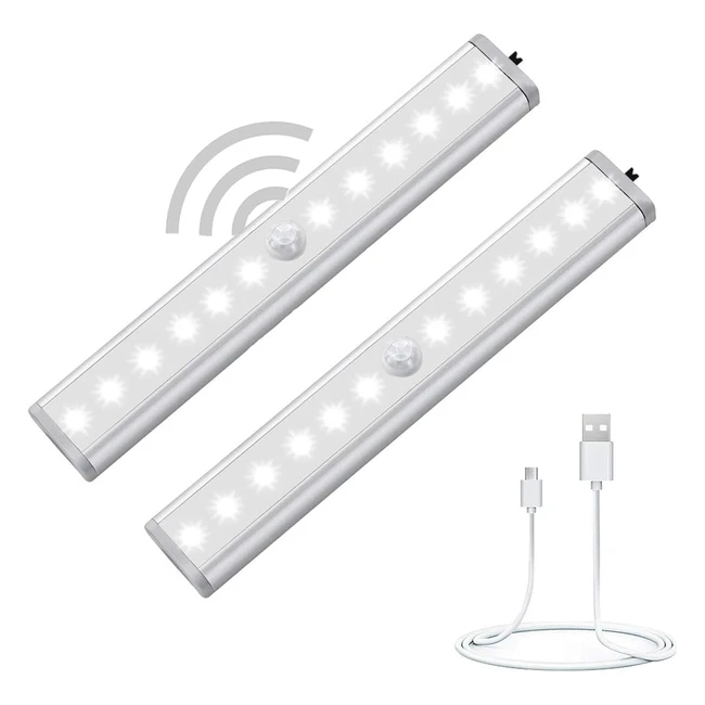 Boenfu LED USB Motion Sensor Light 2 Pack Stick On Rechargeable Strip Lights - Small Sensor Lights for Wardrobe Closet Kitchen Stairs