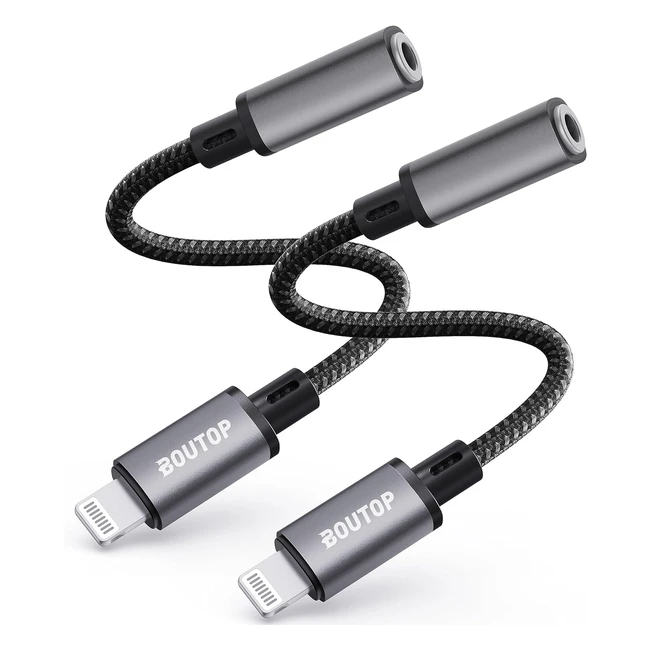 Boutop Lightning to 35mm Headphone Jack Adapter Apple MFi Certified iPhone Earpods Adapter 2 Pack Gray