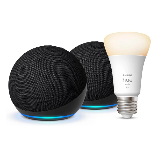 Bundle Echo Dot 5a Gen Antracite 2 Pezzi + Philips Hue Smart Bulb E27 - Casa Intelligente