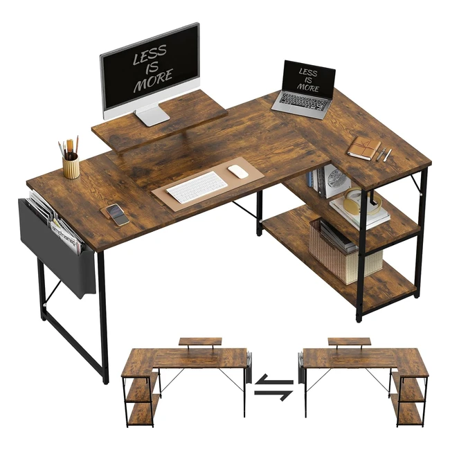 Bureau d'angle TriumphKey 160x80x75cm avec rangement - Design réversible - Étagères ajustables