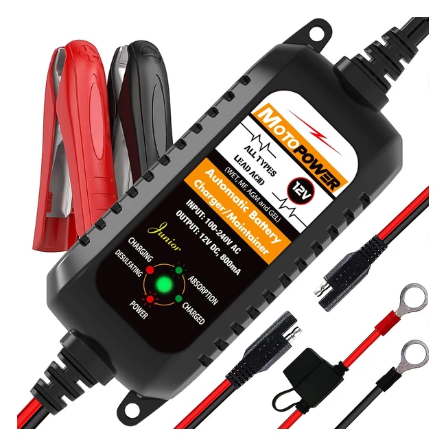 Caricabatterie Motopower MP00205A 12V 800mA Automatico per Auto Moto ATV Camper Barca - Compatto e Ecologico
