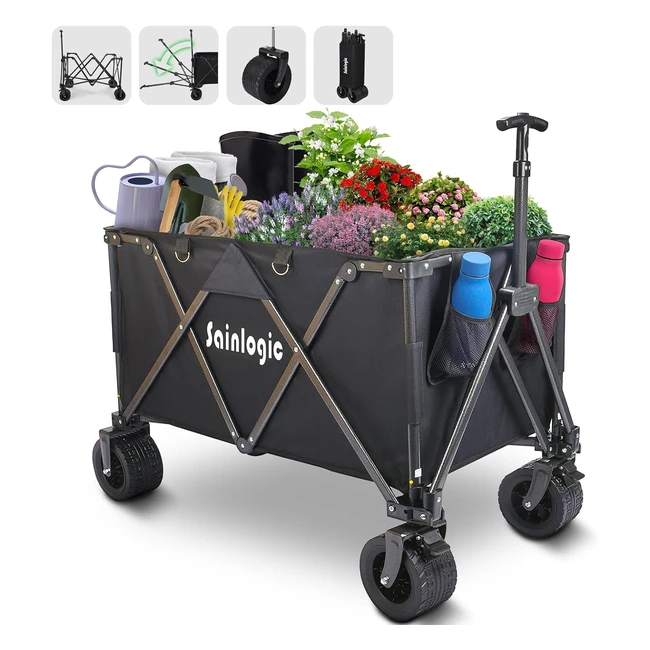 Carrello giardino pieghevole Sainlogic 280L 150kg - Ruote grandi, 2 freni, acciaio al carbonio nero