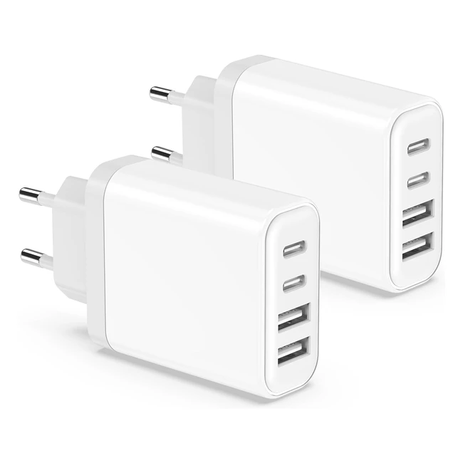 -5%Chargeur rapide USB C PD 30, 20W par port, 40W total. Charge jusqu'à 3x plus rapide. 4 ports USB C et USB. Compatible avec iPhone, Samsung Galaxy, Pixel, etc. Portable, durable et sûr. Idéal pour la maison, le bureau et les voyages.