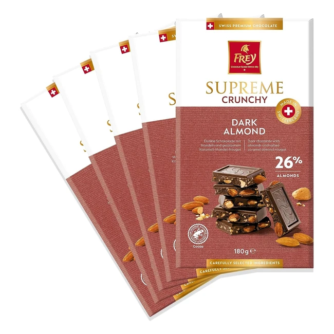 Chocolat noir aux amandes, caramel au beurre salé et nougat - Frey Supreme - Certifié Rainforest Alliance - 5x180g