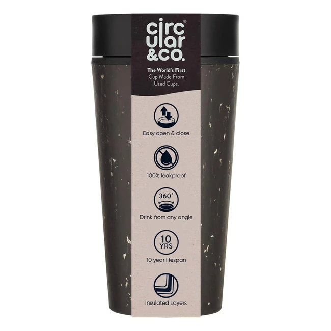 Circular & Co Leakproof Reusable Coffee Cup 12oz340ml - World's First Travel Mug - 100% Leakproof & Sustainable - Insulated Black
