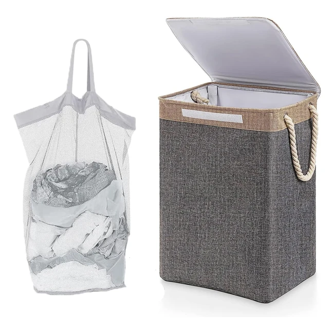 Collapsible Laundry Basket with Lid 78L - Large Laundry Hamper - Washable Inner Bag - Handles - Grey