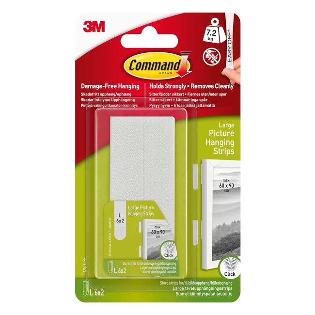 -10%Strong and versatile hanging strips for pictures, frames, and home decor. No tools required. Damage-free decorating. Holds up to 72 kg. Removes cleanly. Pack of 6 pairs. Ideal for solid surfaces. Say goodbye to holes and sticky residue. Get yours now!