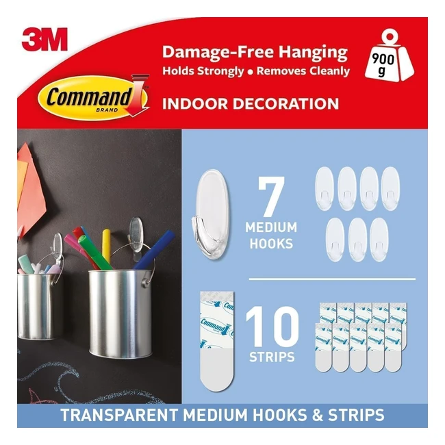 Command Clear Medium Hooks - Multi Pack of 7 Hooks with 10 Adhesive Strips - Damage Free Hanging