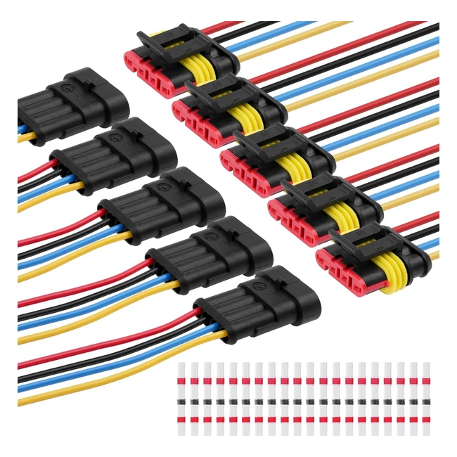Connettore Auto Impermeabile URAQT 5 Pezzi - 4 Pin - Saldatura Seal - Cablati - Elettrici